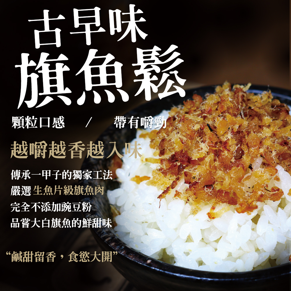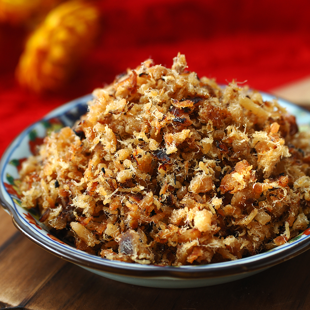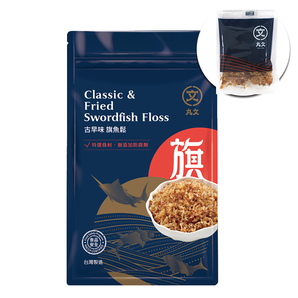 • 特色 : 丸文最招牌旗魚鬆,選用植物油拌炒更容易代謝,口感顆粒有咬勁。